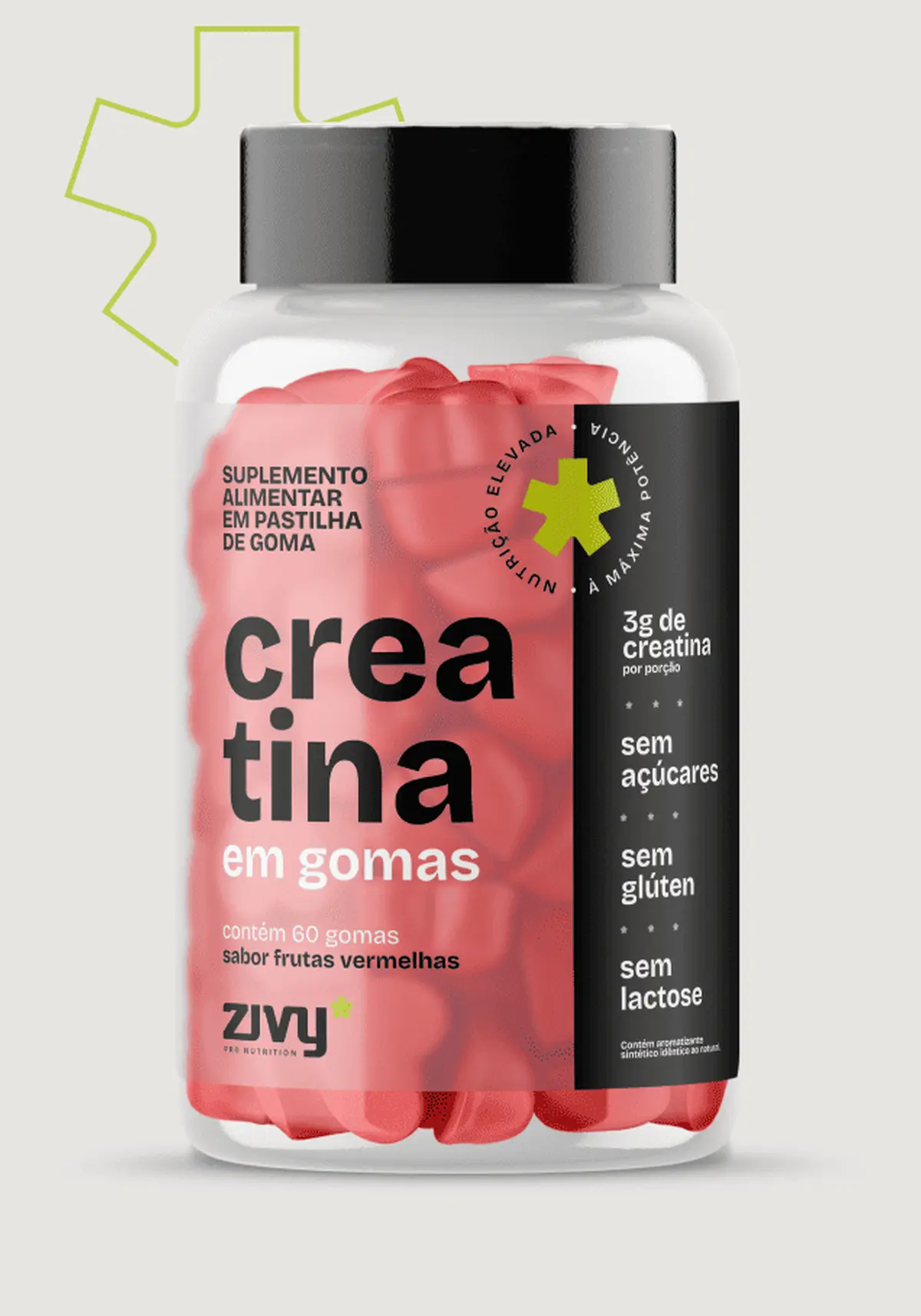 A creatina é um dos suplementos mais estudados e reconhecidos no universo fitness. Funciona como uma fonte rápida de energia para suas células musculares, promovendo aumento de desempenho físico em exercícios repetidos de alta intensidade e curta duração, recuperação muscular aprimorada, saúde cerebral e cognitiva, com benefícios em memória e cognição. Os efeitos da creatina não são imediatos, ela atua sob saturação no organismo. O importante é ter um consumo regular. A creatina em gomas te ajuda a manter o consumo diário!